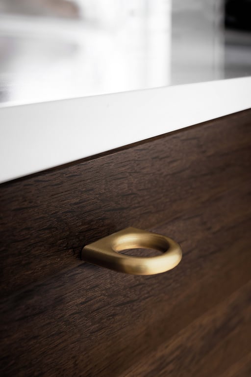 Das Design ist Siegelringen mit geometrischen und geradlinigen Formen nachempfunden. Diese Griffe können in Kombination oder einzeln verwendet werden. Ihre 160-mm-Ausführung ist vor allem für Küchen und Badezimmer gedacht. Die 32-mm-Ausführung passt ideal zu vielen Kleiderschränken, und beide würden sich in einer Büroumgebung gut machen.